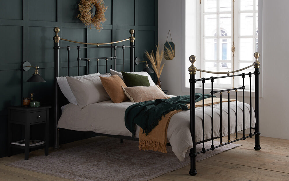 Explore the luxurious yet budget friendly wonders of the Birlea Bronte Metal Bed Frame. Styled with inspiration from traditional Victorian beds, this frame is flawlessly classy. Taking influence to produce seamless curvature across the headboard and foot end. Adding further elegance to this bed frame are the brass elements throughout. Choose from the well thought out neutral palette of cream or back. These colours leave the decorating completely up to you as they beautifully enhance any interior style. The paint on this frame is held securely in place due to the specialised epoxy used. Helping to limit the onset of unwanted chips and general deterioration. Finished with a secure layer of sprung slats for added bounce and support. Available now at Mattress Online.