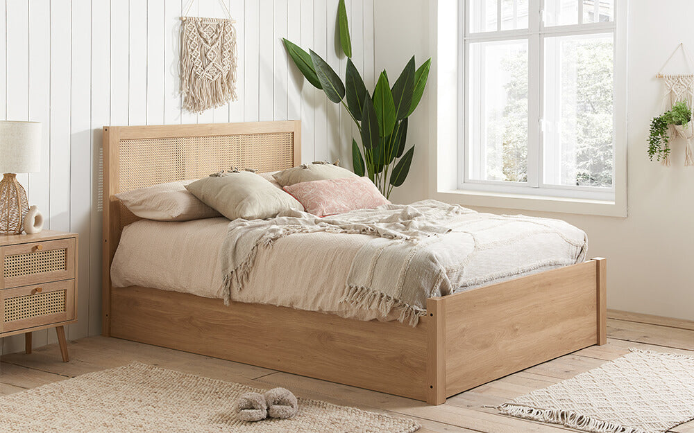 Let the brilliance of the Birlea Croxley Wooden Rattan Ottoman Bed Frame transform your bedroom. Constructed with a oak wood effect finish, this bed frame is exceptionally durable. The strong foundation allows for a more secure and comfortable sleeping experience. The light colour of the bed frame promotes a fresh and clean feel. This also helps it effortlessly blend into any bedroom aesthetic whether it's modern or traditional. Designed to offer ultimate convenience, the Croxley frame features ottoman storage. Neatly stash away anything you want, from your bulky winter clothes to your childhood teddies. Utilise this space in any way you like! Finished with a beautiful rattan headboard, this bed frame is the perfect addition to your room. Available now at Mattress Online.