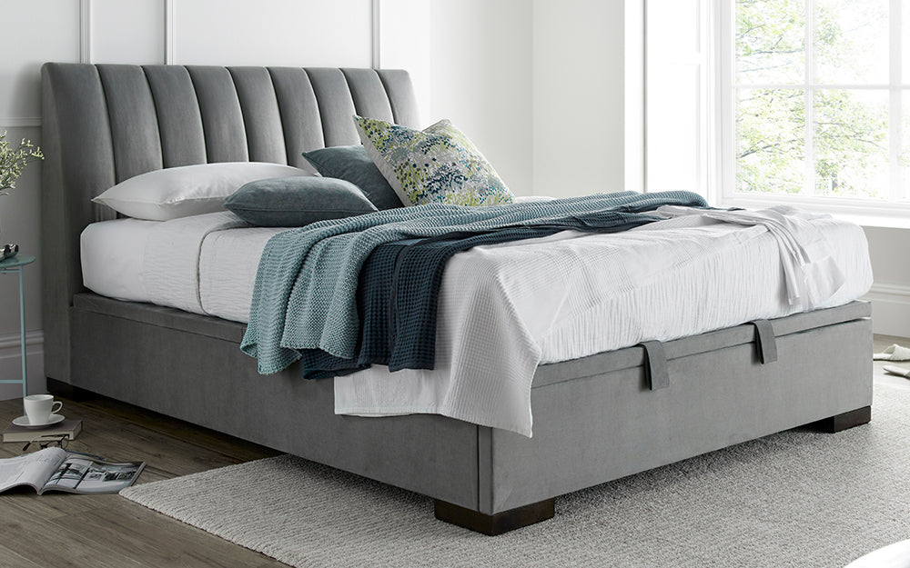 Consider the Novo Lantella Ottoman Bed Frame for a bed that is both stylish and practical. A sturdy wooden frame offers the ideal support for yourself and your mattress. The quality Velvet Plume fabric gives this bed a wonderfully trendy look, with vertical panelling in the headboard for a simply fantastic look. The elegance of this bed is heightened by the complementary dark, hardwood feet. And open the ottoman storage with the fabric handles for a great solution to concealing unsightly everyday clutter. Available to order now at Mattress Online.