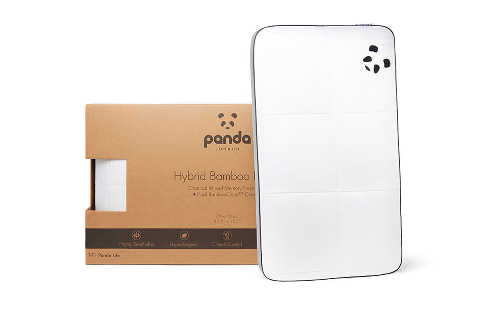 Rest your head on the Panda Hybrid Bamboo Pillow and drift off with the cloud-like comfort. Fashioned from sustainable bamboo, the cover is indulgently soft. Providing a gentle and kind-to-skin surface for you to rest your head against. The heart of this pillow is formed from Panda's expert CharcoCell Foam™. Similar to regular memory foam, this layer shapes around you and cuddles you into a cosy and supportive position. Lifting pressure off your shoulders and neck for a restful sleep free from aches. Infused with Charcoal, the foam regulates temperature and wicks away moisture, keeping you dry and cool. CharcoCell Foam™ features wonderful orthopaedic support for all sleeping positions. Available now at Mattress Online.