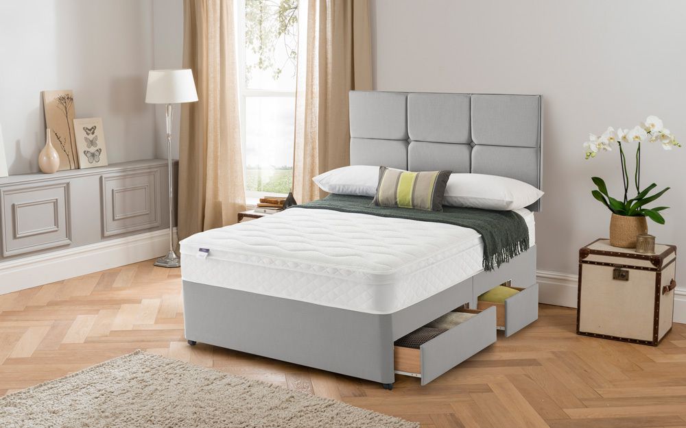 Silentnight Rio Miracoil Cushion Top Divan Bed Set, Superking, 2 Drawers, Matching Paris Headboard, Sandstone